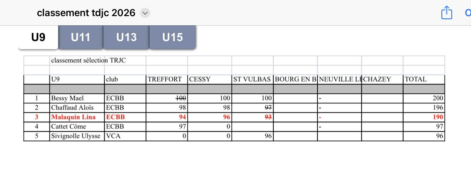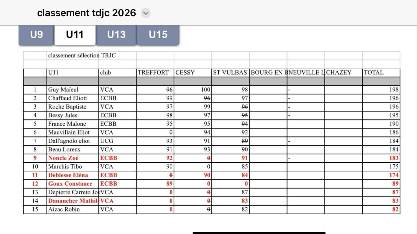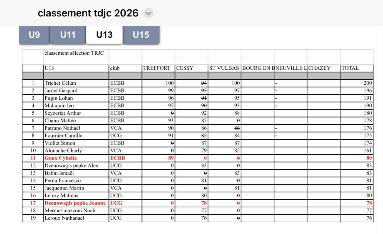 • 56 jeunes (répartis sur 3 clubs, catégories U9 à U15) ont participé à au moins une des trois épreuves.